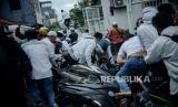 Massa aksi unjuk rasa 1812 Front Pembela Islam (FPI) saat berusaha dibubarkan aparat kepolisian di kawasan Kebon Jahe, Jakarta Pusat, Jumat (18/12). Polisi memukul mundur massa yang menolak dibubarkan guna menghindari kerumunan. Sebanyak 5.000 personel gabungan dari unsur TNI-Polri dan Pemprov DKI Jakarta disiapkan untuk mengawal dan mengamankan unjuk rasa 1812 di kawasan Istana Negara. (FOTO : Republika/Thoudy Badai)