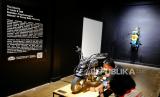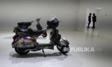 Pengunjung melihat Vespa klasik saat gelaran Kustomfest 2020 di Jogja National Museum, Yogyakarta, Jumat (18/12). Lebih dari 150 mobil dan motor dipamerkan dengan konsep galeri seni atau museum. Protokol kesehatan juga dijalankan secara ketat mengingat pandemi Covid-19. Dalam satu hari ada empat sesi dan setiap sesi dibatasi 60 orang. (FOTO : Wihdan Hidayat / Republika)