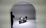 Pengunjung memotret dengan gawai motor modifikasi saat gelaran Kustomfest 2020 di Jogja National Museum, Yogyakarta, Jumat (18/12). Lebih dari 150 mobil dan motor dipamerkan dengan konsep galeri seni atau museum. Protokol kesehatan juga dijalankan secara ketat mengingat pandemi Covid-19. Dalam satu hari ada empat sesi dan setiap sesi dibatasi 60 orang. (FOTO : Wihdan Hidayat / Republika)
