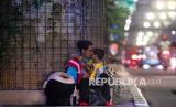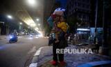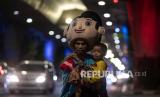 REPUBLIKA.CO.ID, JAKARTA -- Wahyu (30) menggendong anaknya sambil mengamen sebagai badut di Jalan Pangeran Antasari, Jakarta Selatan, Sabtu (19/12/2020).