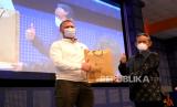 Rektor Amikom, Suyanto memberikan cenderamata kepada Presiden Silicon Ballet Innovation Center, Andrey Kunov usai penandatanganan kerjasama di Graha Amikom, Yogyakarta, Senin (21/12). Pada acara dilakukan penandatangan kerjasama akademik dan bisnis antara Amikom dan Silicon Valley. Selain itu juga ada kuliah umum oleh Andrey Kunov untuk undangan terbatas dan secara daring untuk umum. (FOTO : Wihdan Hidayat / Republika)