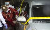 Petugas Komnas HAM memeriksa satu dari tiga mobil yang dikendarai polisi dan enam laskar FPI dalam kasus penembakan anggota FPI di Polda Metro Jaya, Jakarta, Senin (21/12/2020). Setelah pemeriksaan terhadap tiga mobil yang digunakan saat kasus penembakan anggota FPI di Tol Jakarta-Cikampek KM 50 tersebut, Komnas HAM akan menindaklanjuti hasil balistik, siapa saja yang menembak, dan cek darah dari anggota FPI. (FOTO : ADITYA PRADANA PUTRA/ANTARA )