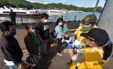 REPUBLIKA.CO.ID, DENPASAR -- Petugas KKP Kelas I Denpasar memeriksa surat rapid test antigen milik warga yang baru tiba di Pelabuhan Padangbai, Karangasem, Bali, Senin (21/12/2020).