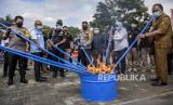REPUBLIKA.CO.ID, BANDUNG -- Kepolisian Daerah (Polda) Jawa Barat memusnahkan barang bukti tindak pidana narkoba hasil pengungkapan periode Juli hingga Desember 2020. Barang bukti berupa 14.487,16 gram sabu, 1.500,64 gram ganja, 161.518 butir obat-obatan terlarang, 120.641,74 gram tembakau sintetis, 64 jeriken tuak dan 20.057 botol minuman keras.