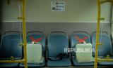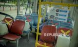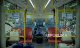 Jeriken berisikan air disimpan di dalam bus saat pra uji coba kendaraan bus listrik skywell di Jakarta, Selasa (22/12). PT Kendraan Listrik Indonesia melakukan pra uji coba kendaraan listrik merek skywell tipe NJL6126BEV yang dicanangkan akan menjadi bagian dari sarana transportasi di Ibu Kota melalui kerjasama dengan Transjakarta setelah melakukan tahap pra uji coba dan uji coba. (FOTO : Republika/Thoudy Badai)