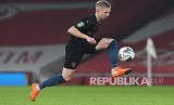 Aksi Oleksandr Zinchenko pada laga babak perempat final Piala Liga Inggris (Carabao Cup) antara Arsenal FC melawan Manchester City di London, Rabu (23/12) dini hari WIB. (FOTO : EPA-EFE/NEIL HALL )