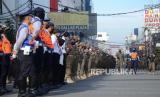 REPUBLIKA.CO.ID, BANDUNG -- Petugas gabungan mengikuti Apel Gelar Pasukan Pengamanan Malam Natal dan Tahun Baru 2021, di Jalan Dalem Kaum, Kota Bandung, Rabu (23/12).