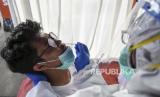 REPUBLIKA.CO.ID, JAKARTA -- Petugas medis melakukan tes cepat antigen COVID-19 kepada calon penumpang bus Angkutan Kota Antar Provinsi (AKAP) di Terminal Kampung Rambutan, Jakarta, Rabu (23/12/2020).