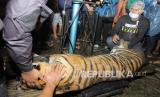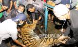 REPUBLIKA.CO.ID, JAKARTA -- BKSDA Aceh bersama tim dokter hewan menimbang harimau sumatra liar (Panthera tigris sumatrae) saat proses evakuasi di Desa Pangkalan Sulampi, Kecamatan Suro, Kabupaten Aceh Singkil, Aceh, Rabu (23/12/2020). Harimau sumatra liar yang masuk ke dalam perangkap tersebut selanjutnya dibawa ke Conservation Response Units (CRU) Trumon Kabupaten Aceh Selatan untuk observasi lebih lanjut.