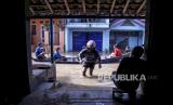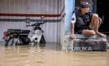 Seorang warga beraktivitas di dekat genangan banjir di Kampung Bojongasih, Kecamatan Dayeuhkolot, Kabupaten Bandung, Jumat (25/12). Banjir luapan Sungai Citarum setinggi 30 hingga 120 cm kembali merendam ribuan tempat tinggal dan mengakibatkan sedikitnya 2.000 kepala keluarga terdampak. (FOTO : ABDAN SYAKURA/REPUBLIKA)