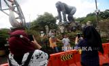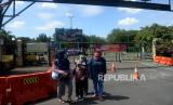 Warga berfoto di depan pintu masuk Taman Margasatwa Ragunan, Jakarta, Jumat (25/12). Dalam rangka menekan penularan Covid-19 selama libur Natal dan Tahun Baru 2021, Pemprov DKI Jakarta menutup sementara area publik, destinasi wisata, serta lokasi lainnya, pada 25 dan 31 Desember 2020 serta 1 Januari 2021. Sejumlah tempat wisata favorit yang ditutup di antaranya Taman Margasatwa Ragunan,Taman Impian Jaya Ancol dan Taman Mini Indonesia Indah (TMII). (FOTO : Prayogi/Republika.)