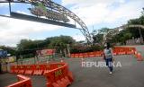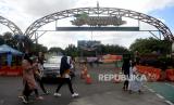 Petugas kemamanan menutup gerbang Taman Margasatwa Ragunan, Jakarta, Jumat (25/12). Dalam rangka menekan penularan Covid-19 selama libur Natal dan Tahun Baru 2021, Pemprov DKI Jakarta menutup sementara area publik, destinasi wisata, serta lokasi lainnya, pada 25 dan 31 Desember 2020 serta 1 Januari 2021. Sejumlah tempat wisata favorit yang ditutup di antaranya Taman Margasatwa Ragunan,Taman Impian Jaya Ancol dan Taman Mini Indonesia Indah (TMII). (FOTO : Prayogi/Republika.)