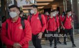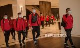 Sejumlah Pemain Timnas U-19 Indonesia berjalan usai Pelepasan di Jakarta, Sabtu (26/12). Timnas U-19 Indonesia kembali melanjutkan Training Camp ke Spanyol meski perhelatan Piala Dunia U-20 2021 yang diselenggarakan di Indonesia dibatalakan oleh FIFA akibat pandemi Covid-19 secara global tidak terkendali. (FOTO : Republika/Thoudy Badai)