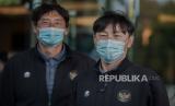 Pelatih Timnas U-19 Indonesia Shin Tae-yong (kanan) saat melepas sejumlah pemain Timnas U-19 Indonesia di Jakarta, Sabtu (26/12). Timnas U-19 Indonesia kembali melanjutkan Training Camp ke Spanyol meski perhelatan Piala Dunia U-20 2021 yang diselenggarakan di Indonesia dibatalakan oleh FIFA akibat pandemi Covid-19 secara global tidak terkendali. Republika/Thoudy Badai (FOTO : Republika/Thoudy Badai)