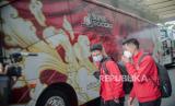 Sejumlah Pemain Timnas U-19 Indonesia berjalan menaiki bus usai Pelepasan di Jakarta, Sabtu (26/12). Timnas U-19 Indonesia kembali melanjutkan Training Camp ke Spanyol meski perhelatan Piala Dunia U-20 2021 yang diselenggarakan di Indonesia dibatalakan oleh FIFA akibat pandemi Covid-19 secara global tidak terkendali. Republika/Thoudy Badai (FOTO : Republika/Thoudy Badai)