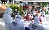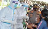 Wisatawan menjalani tes cepat (rapid test) swab antigen COVID-19 secara gratis di kawasan pariwisata Pantai Kuta, Badung, Bali, Sabtu (26/12/2020). Kegiatan yang diselenggarakan Korlantas Polri, Jasa Raharja dan Polda Bali tersebut dilakukan untuk mengantisipasi penyebaran pandemi COVID-19 di destinasi pariwisata selama masa liburan Hari Raya Natal 2020 dan Tahun Baru 2021. (FOTO : ANTARA/Fikri Yusuf)
