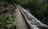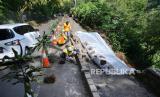 REPUBLIKA.CO.ID, BANDUNG -- Pengendara melintasi ruas jalan yang diberi pembatas akibat pergerakan tanah dan longsor di kawasan Cisarua, Kabupaten Bandung Barat, Minggu (27/12/2020).