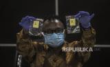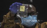 Komisioner Komnas HAM Choirul Anam menunjukkan barang bukti hasil penyelidikan saat konferensi pers di Jakarta, Senin (28/12). Konferensi pers tersebut membahas perkembangan penyelidikan dan temuan barang bukti di lapangan oleh Komnas HAM pada peristiwa tewasnya 6 laskar FPI di kilometer 50 Tol Jakarta-Cikampek. (FOTO : Republika/Putra M. Akbar)