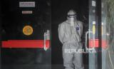 Petugas memakai baju hazmat saat mencuci tangan di Graha Wisata Ragunan, Jakarta, Senin (28/12). Berdasarkan data perkembangan kasus virus Corona (Covid-19) harian di Indonesia yang dirilis Satgas Penanganan Covid-19 per Senin (28/12), DKI Jakarta menjadi penyumbang tertinggi kasus harian Covid-19 sebanyak 1.678 kasus harian atau setara 28,6 persen penambahan kasus nasional disumbang oleh Jakarta. (FOTO : Republika/Putra M. Akbar)