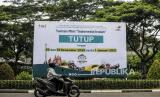 Pengendara motor melintas di dekat spanduk informasi yang memberitahukan penutupan kawasan Taman Mini Indonesia Indah (TMII) pada Hari Raya Natal dan Tahun Baru 2020 di Jakarta, Selasa (29/12). TMII menutup seluruh operasional wahana untuk mencegah potensi penyebaran Covid-19 sesuai dengan Instruksi Gubernur DKI Jakarta Nomor 64 Tahun 2020 tentang Ketentuan Operasional Tempat Wisata Selama Libur Natal dan Tahun Baru. (FOTO : Republika/Putra M. Akbar)