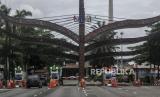 Sebuah mobil melintas di dekat spanduk informasi yang memberitahukan penutupan kawasan Taman Mini Indonesia Indah (TMII) pada Hari Raya Natal dan Tahun Baru 2020 di Jakarta, Selasa (29/12). TMII menutup seluruh operasional wahana untuk mencegah potensi penyebaran Covid-19 sesuai dengan Instruksi Gubernur DKI Jakarta Nomor 64 Tahun 2020 tentang Ketentuan Operasional Tempat Wisata Selama Libur Natal dan Tahun Baru. (FOTO : Republika/Putra M. Akbar)