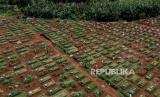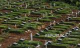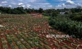 Suasana deretan makam Covid-19 di TPU Pondok Ranggon, Jakarta, Selasa (29/12). Blok makam Covid-19 di TPU Pondok Ranggon untuk jenazah muslim maupun non muslim sudah penuh dengan total 4.650 jenazah telah dimakamkan sepanjang Maret hingga 25 Desember 2020.   (FOTO : Republika/Putra M. Akbar)