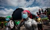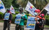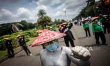 REPUBLIKA.CO.ID, JAKARTA -- Massa dari Konfederasi Serikat Pekerja Indonesia (KSPI) melakukan aksi unjuk rasa di kawasan kawasan Patung Kuda Arjuna Wiwaha, Jakarta, Selasa (29/12). Aksi tersebut bertujuan untuk menolak UU Cipta kerja dan meminta pemerintah menaikkan UMSK 2021.