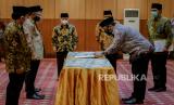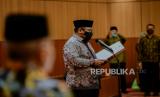 REPUBLIKA.CO.ID, JAKARTA -- Anggota Badan Amil Zakat Nasional saat dilantik di Gedung Kementerian Agama RI, Jakarta, Rabu (30/12). Sejumlah anggota Badan Amil Zakat Nasional (BAZNAS) periode 2020-2025 dilantik oleh Menteri Agama Yaqut Cholil Qoumas dan Wakil Menteri Agama Zainut Tauhid Sa’adi.