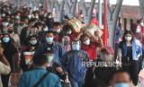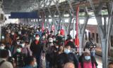REPUBLIKA.CO.ID, JAKARTA -- Sejumlah penumpang kereta memadati perom seiring kedatangan kereta jarak jauh di Stasiun Pasar Senen, Jakarta, Ahad (3/1). PT Kereta Api Indonesia (Persero) Daop 1 Jakarta memperkirakan sekitar 15.000 - 16.000 lebih penumpang KA Jarak Jauh turun di area Daop 1 Jakarta baik yang berasal dari wilayah Jawa Barat, Jawa Tengah dan Jawa Timur pada puncak arus balik libur Natal dan tahun baru di hari Ahad dan Senin atau 3-4 Januari 2