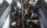 Sejumalah penumpang kereta tiba di Stasiun Pasar Senen, Jakarta, Ahad (3/1). (FOTO : Prayogi/Republika.)