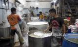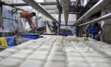 REPUBLIKA.CO.ID, BANDUNG -- Pekerja salah satu pabrik di Sentra Industri Tahu Cibuntu, Babakan Ciparay, Kota Bandung, kembali beroperasi Ahad (3/1). Sejumlah pabrik di kawasan tersebut kembali berproduksi setelah melakukan mogok produksi selama tiga hari imbas melonjaknya harga kacang kedelai sebagai dasar pembuatan tahu.