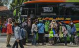 REPUBLIKA.CO.ID, JAKARTA -- Sejumlah penumpang tiba di Terminal Kampung Rambutan, Jakarta, Ahad (3/1). Berdasarkan data Dishub Terminal Kampung Rambutan per tanggal 2 Januari 2021 jumlah penumpang bus yang tiba di Jakarta sebanyak 34.220 penumpang, sementara pemudik yang diberangkatkan menuju luar Jakarta melalui Terminal Kampung Rambutan sebanyak 15.059 penumpang.