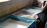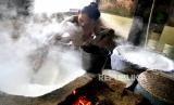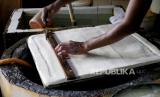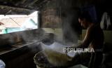 REPUBLIKA.CO.ID, YOGYAKARTA -- Pengerajin membuat tahu di Kelompok Industri Tahu dan Tempe Sentosa Adi, Gedongkiwo, Yogyakarta, Senin (4/1).