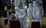 REPUBLIKA.CO.ID, JAKARTA -- Sejumlah karyawan di lingkungan Kementerian Agama mengikuti tes PCR di Gedung Kementerian Agama, Jakarta, Senin (4/1).