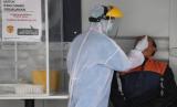 REPUBLIKA.CO.ID, JAKARTA -- Petugas medis melakukan tes usap COVID-19 secara lantatur atau layanan tanpa turun di Genomik Solidaritas Indonesia Laboratorium, Cilandak, Jakarta, Senin (4/1/2021). Pemprov DKI Jakarta memperpanjang PSBB transisi hingga 17 Januari 2021 untuk menekan kasus aktif COVID-19 pascalibur natal dan tahun baru.