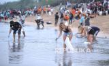 REPUBLIKA.CO.ID, BADUNG -- Sampah yang terbawa arus laut berserakan di Pantai Kuta, Badung, Bali, Rabu (6/1/2021). Ratusan warga dari berbagai unsur masyarakat dan aparat setempat pun menggelar Aksi Bersih-bersih Pantai Kuta.