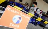 Wartawan menunggu antrean rapid tes antigen di Pos Kesehatan Posko Dukungan Satgas Covid-19 DIY, Yogyakarta, Rabu (6/1). Sejumlah wartawan yang bertugas di Kepatihan Pemprov DIY harus menjalani rapid tes antigen menyusul adanya pegawai Humas Pemprov DIY yang terpapar Covid-19. (FOTO : Wihdan Hidayat / Republika)