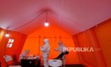 Tenaga medis melakukan pengetesan saat rapid tes antigen kepada wartawan di Pos Kesehatan Posko Dukungan Satgas Covid-19 DIY, Yogyakarta, Rabu (6/1). Sejumlah wartawan yang bertugas di Kepatihan Pemprov DIY harus menjalani rapid tes antigen menyusul adanya pegawai Humas Pemprov DIY yang terpapar Covid-19. (FOTO : Wihdan Hidayat / Republika)
