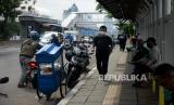 Warga berjalan menuju Stasiun Cawang, Jakarta, Rabu (6/1). Pemerintah kembali memberlakukan pembatasan kegiatan masyarakat mulai 11 Januari hingga 25 Januari. Pengetatan kegiatan masyarakat ini dilakukan untuk menekan angka penularan Covid-19 yang semakin meningkat dalam beberapa pekan terakhir.Prayogi/Republika. (FOTO : Prayogi/Republika.)