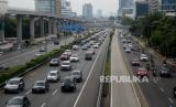 Sejumlah kendaraan melintas di tol dalam kota di Kawasan Cawang, Jakarta, Rabu (6/1). Pemerintah kembali memberlakukan pembatasan kegiatan masyarakat mulai 11 Januari hingga 25 Januari. Pengetatan kegiatan masyarakat ini dilakukan untuk menekan angka penularan Covid-19 yang semakin meningkat dalam beberapa pekan terakhir.Prayogi/Republika. (FOTO : Prayogi/Republika.)