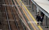 REPUBLIKA.CO.ID, JAKARTA -- Penumpang menunggu keberangkatan KRL tujuan Bogor di Stasiun Cawang, Jakarta, Rabu (6/1).