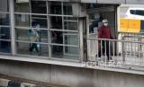 Penumpang berjalan menuju JPO Halte Transjakarta Cikoko Stasiun Cawang, Jakarta, Rabu (6/1). Pemerintah kembali memberlakukan pembatasan kegiatan masyarakat mulai 11 Januari hingga 25 Januari. Pengetatan kegiatan masyarakat ini dilakukan untuk menekan angka penularan Covid-19 yang semakin meningkat dalam beberapa pekan terakhir. (FOTO : Prayogi/Republika.)