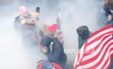 Video menunjukkan, pengunjuk rasa memecahkan jendela dan polisi menembakkan gas air mata di dalam gedung sebagai kantor Kongres AS itu. Kepala Polisi Metropolitan Washington, Robert Contee, mengatakan, para perusuh menggunakan bahan kimia yang mengiritasi untuk menyerang polisi. Beberapa polisi terluka dan satu warga sipil ditembak.