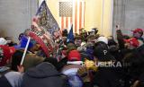 REPUBLIKA.CO.ID, WASHINGTON -- Ratusan pendukung Presiden AS Donald Trump menyerbu Capitol Amerika Serikat (AS) pada Rabu (6/1). Serbuan ini merupakan upaya untuk membatalkan kekalahan Trump dalam pemilu November tahun lalu, yang memaksa Kongres menunda sidang yang akan mengesahkan kemenangan presiden terpilih Joe Biden.