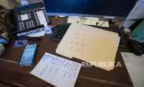 Pemandangan dari catatan yang ditinggalkan oleh pendukung Presiden AS Donald J. Trump di meja Ketua DPR AS Nancy Pelosi, setelah pendukung Presiden AS Donald J. Trump menerobos gedung Capitol AS di Washington, DC, AS, 06 Januari 2021. Para pengunjuk rasa menyerbu Capitol AS tempat sertifikasi suara Electoral College untuk Presiden terpilih Joe Biden berlangsung. (FOTO : EPA-EFE/JIM LO SCALZO)