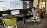 Sejumlah pegawai memantau layar pergerakan pendistribusian vaksin Covid-19 di ruang command center pendistribusian vaksin Covid-19 di PT Bio Farma, Jalan Pasteur, Kota Bandung, Kamis (7/1). Dalam kunjungan kerjanya, Menteri BUMN Erick Thohir meninjau fasilitas infrastruktur vaksin Covid-19 mulai dari ruang penyimpanan vaksin hingga tahapan pendistribusian ke 34 provinsi di Indonesia serta memastikan kesiapan PT Bio Farma (Persero) dalam memproduksi vaksin Covid-19. (FOTO : ABDAN SYAKURA/REPUBLIKA)