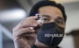 Menteri BUMN Erick Thohir menunjukkan kemasan vaksin Covid-19 saat kunjungan kerja di PT Bio Farma, Jalan Pasteur, Kota Bandung, Kamis (7/1). Dalam kunjungan kerjanya, Menteri BUMN Erick Thohir meninjau fasilitas infrastruktur vaksin Covid-19 mulai dari ruang penyimpanan vaksin hingga tahapan pendistribusian ke 34 provinsi di Indonesia serta memastikan kesiapan PT Bio Farma (Persero) dalam memproduksi vaksin Covid-19. Foto: Abdan Syakura/Republika (FOTO : ABDAN SYAKURA/REPUBLIKA)