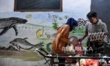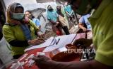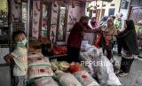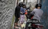 Warga mengantre untuk mendapatkan Bantuan Sosial Non Tunai (BSNT) atau paket sembako di Ciroyom, Kecamatan Andir, Kota Bandung, Jumat (8/11). (FOTO : ABDAN SYAKURA/REPUBLIKA)