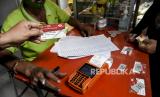Warga menyerahkan Kartu Keluarga Sejahtera saat penyaluran Bantuan Sosial Non Tunai (BSNT) atau paket sembako di Ciroyom, Kecamatan Andir, Kota Bandung, Jumat (8/11). (FOTO : ABDAN SYAKURA/REPUBLIKA)