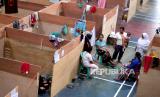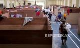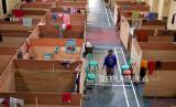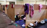 Aktivitas pengungsi warga Krinjing di Barak Pengungsian Deyangan, Magelang, Jawa Tengah, Jumat (8/1). Jumlah pengungsi warga lereng Gunung Merapi di Magelang mencapai 625 orang. Meningkatkan aktivitas gunung sepekan terakhir menambah jumlah warga yang masuk barang pengungsian. (FOTO : Wihdan Hidayat / Republika)